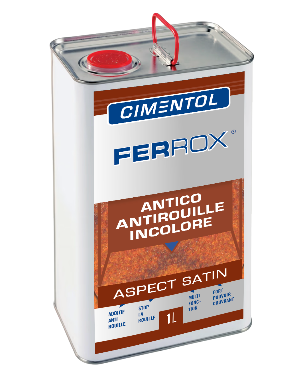 FERROX est un additif/ primaire ou vernis formulé à base de résine alkyde et huile végétale destiné la protection des supports pouvant rouillés ou rouillés, pour améliorer les propriétés des laques glycéro, alkydes, alkyde uréthane antirouille, antico, ou sans additif.